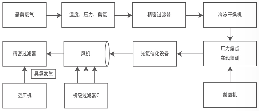 VOC有機廢氣處理的成套設備包括順序連接的等離子體和光氧催化反應設備。其特點是等離子體催化器將等離子體技術與催化劑原位式結合,將特制的催化劑放置在等離子體產生區域內。等離子體在催化劑上原位產生,可將催化劑和放電緊密結合,高效降解VOCs。此研發的催化劑和設備均已獲得國家專利各一項。單獨使用等離子體設備副產物O3和NOx比較多,因此將光氧催化設備置于等離子體設備的后面,經 臭氧氧化、紫外光解與光催化氧化繼續降解有機物及副產物。此套設備可以大大優化廢氣處理效率,對VOCs的去除率能達到90%。